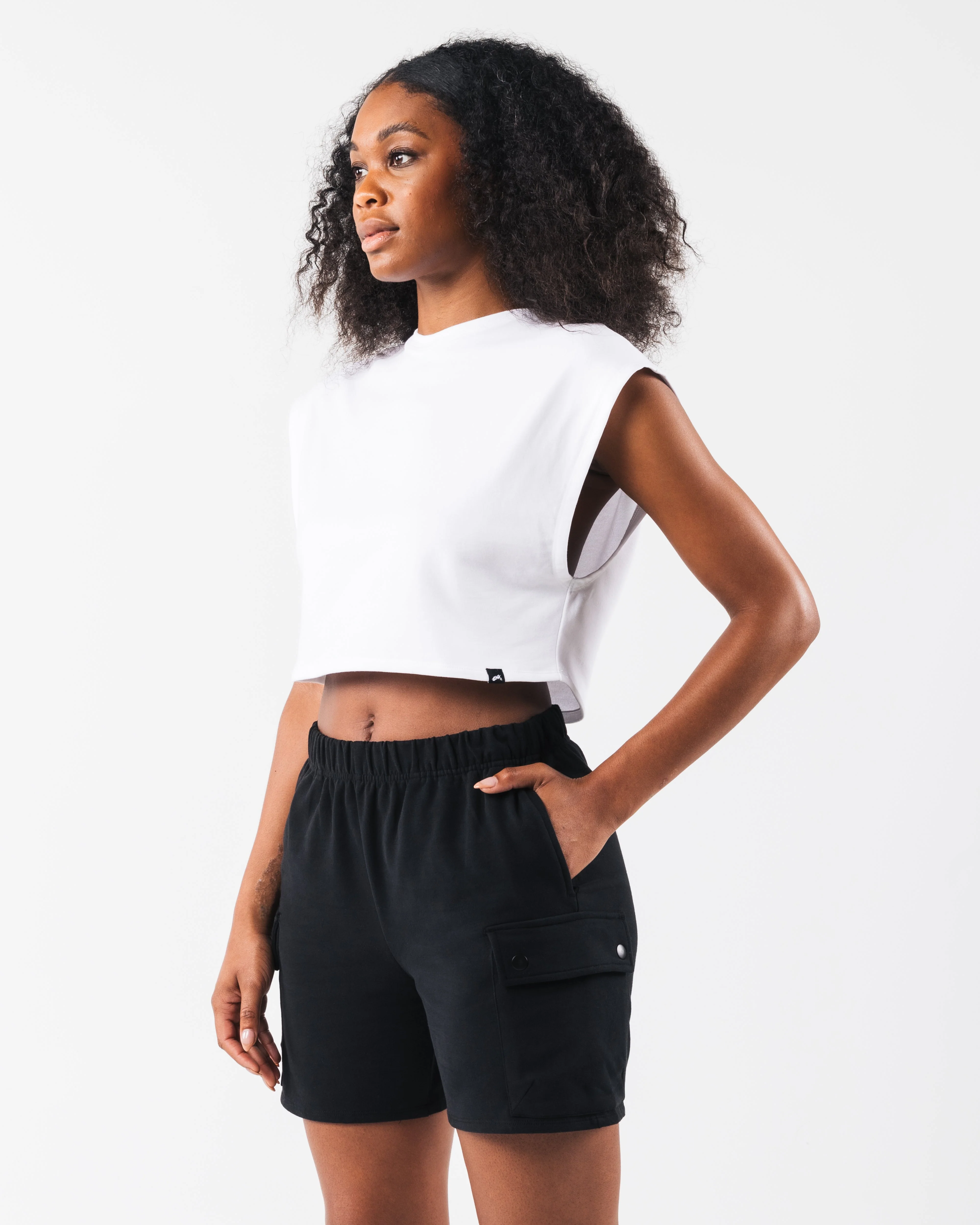 This cotton fleece muscle tee is the perfect merge of style and performance. This irresistibly soft fabric feels like butter on. Layer over your favorite Alphalete bra on chilly days for added warmth or to keep the muscles warm before a workout.