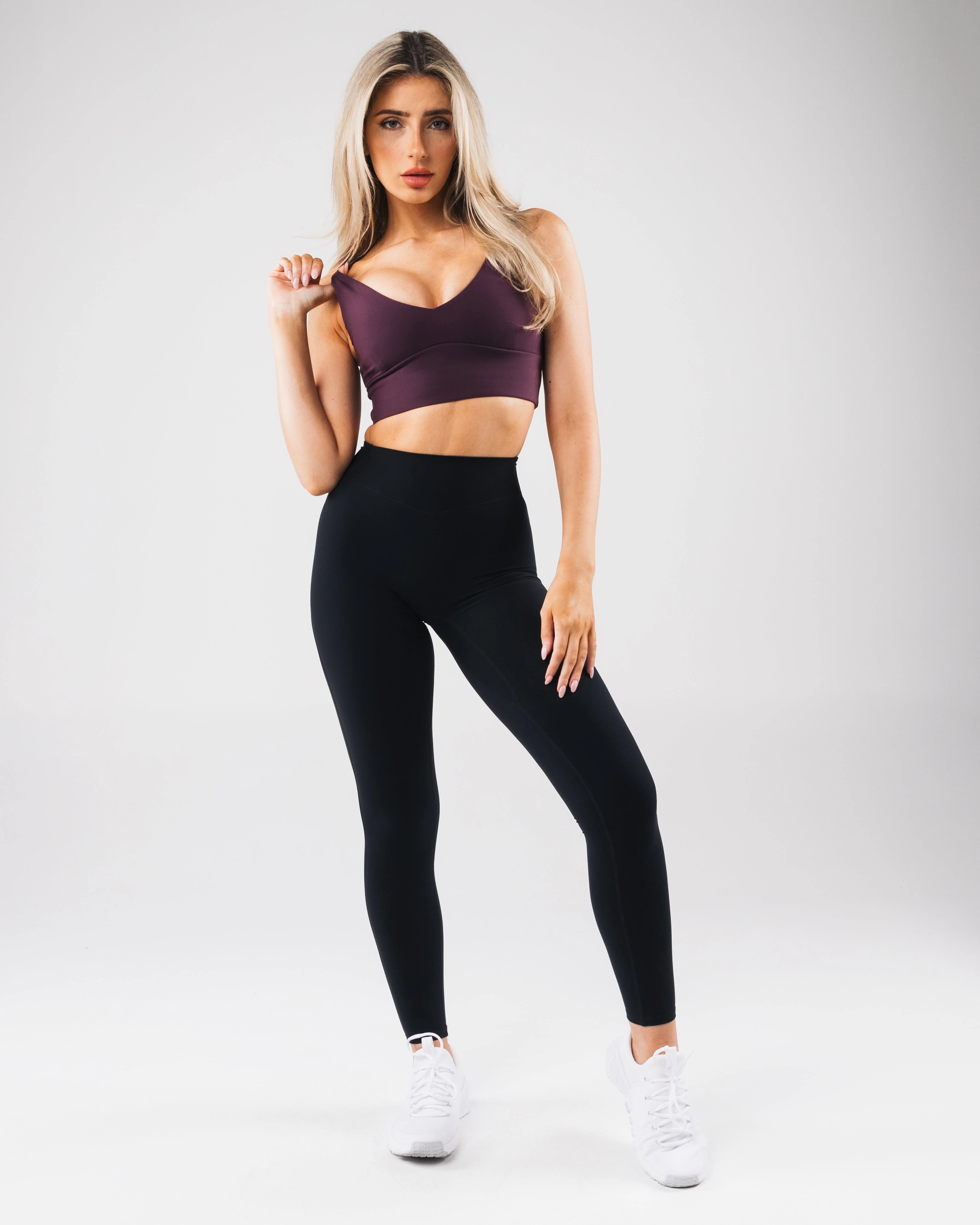 Tenacity is our newest high performance fabric. Extreme high stretch meets a buttery soft hand-feel to make this fabric the perfect ten. These bras allow for unrestricted movement and breathability making them perfect for high intensity training. The plunging V neckline offers a flattering cut to layer under your favorite Alphalete tops or wear on its own.